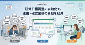これまでの業務は手作業で運用されていたため、 状況に応じて柔軟に対応できる一方で、 業務ルールや判断基準が明確に言語化されていない部分も多くありました。 システム化を進めるためには、こうした暗黙知を整理し、 業務ルールや例外対応を言語化した上で実装案を策定する必要があります。 LazyBzでは現場ヒアリングを通じて業務の考え方を整理し、 システムとして実現できる形に落とし込む部分で力を発揮しました。